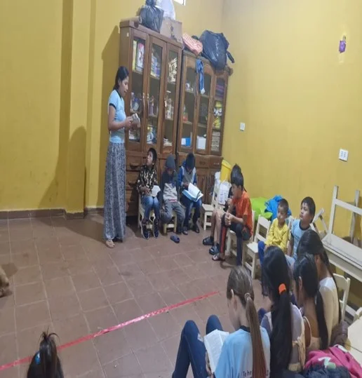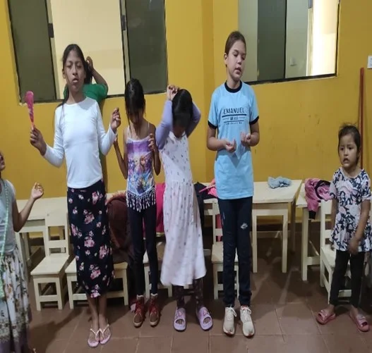 La jornada organizó con una calurosa bienvenida para todos los participantes. Pusimos este tiempo especial en las manos del Señor con una oración de apertura, y rápidamente pasamos a un tiempo de alabanzas súper animado, dirigido por las tutoras Carla Daniela y Maira . ¡Fue hermoso ver a tantos niños y jóvenes cantando con todo el corazón!